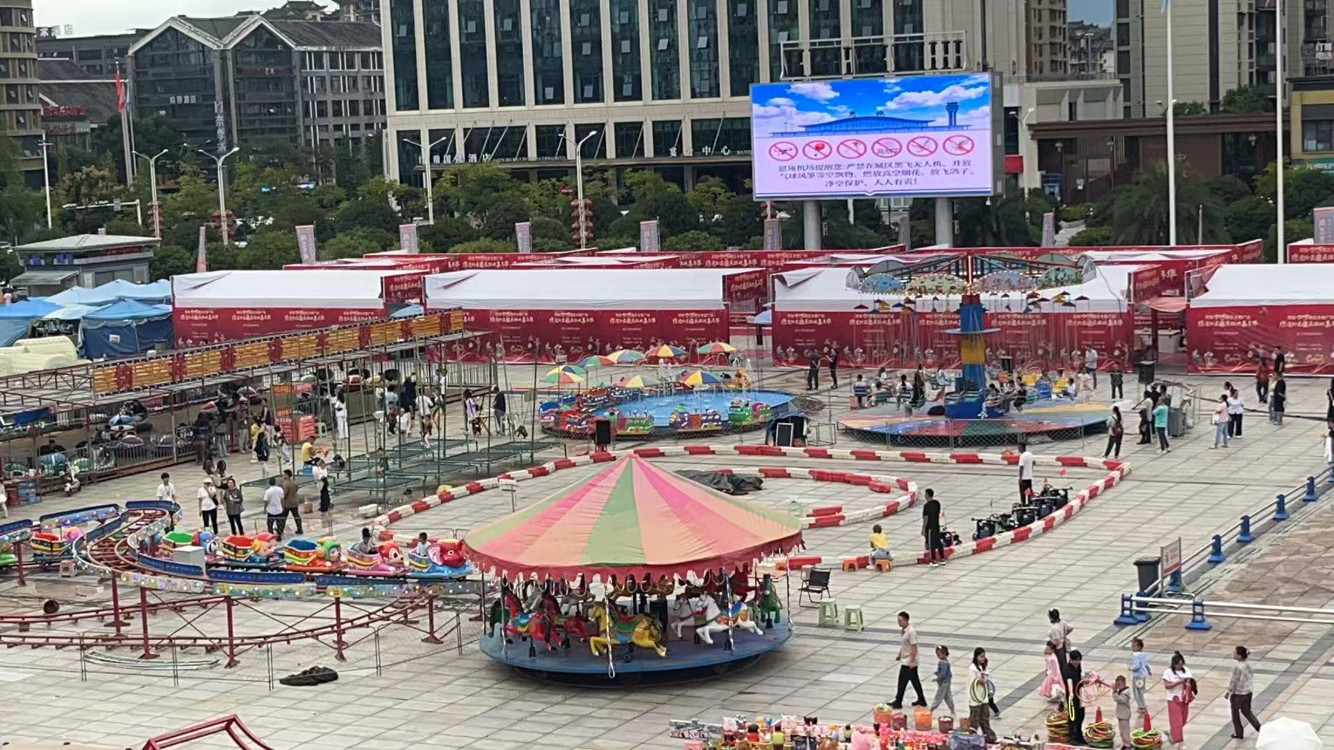 值得一提的是,10月1日开始,州民族文化中心户外LED大屏上首次滚动播放恩施机场的净空宣传片,吸引了在此参加活动的广大市民,广场管理方主动发挥公共宣传阵地作用,以直观醒目的形式向社会普及机场净空保护知识,有效扩大了宣传覆盖面,为机场净空安全加油助力。