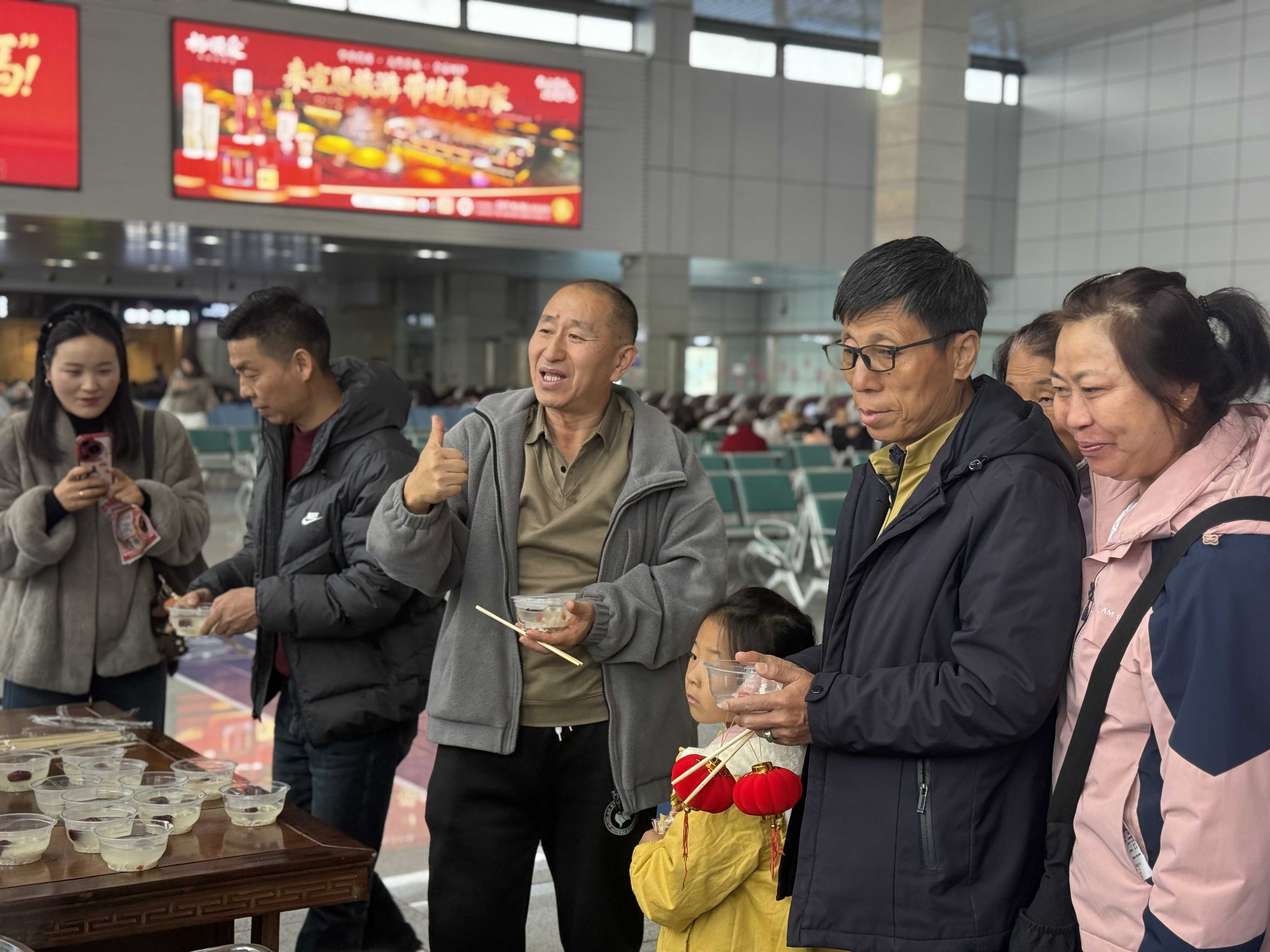 土家风味暖旅途,香甜美食庆团圆。活动现场还特别邀请了专业点心师傅,制作特色小吃马打滚,软糯Q弹、豆香浓郁,尽显地道土家风味;同时暖心熬制米酒汤圆,香甜醇厚、暖意融融,让旅客在候机间隙即可品尝传统元宵美味。一口地道小吃,一碗暖心甜汤,不仅暖胃更暖心,让浓郁的年味与乡土情,伴随旅客一路出行。
